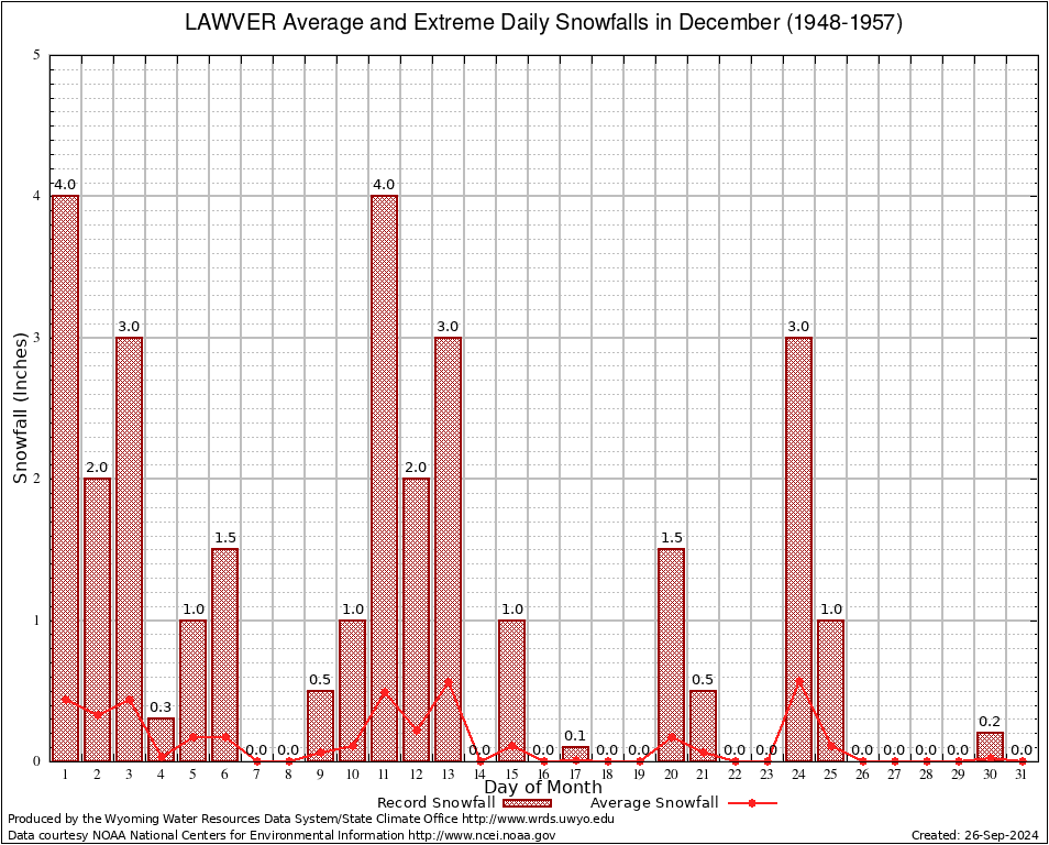 LAWVER (485465) December Average and Extreme Daily Snowfall AMounts (1948-1957) To index page for LAWVER