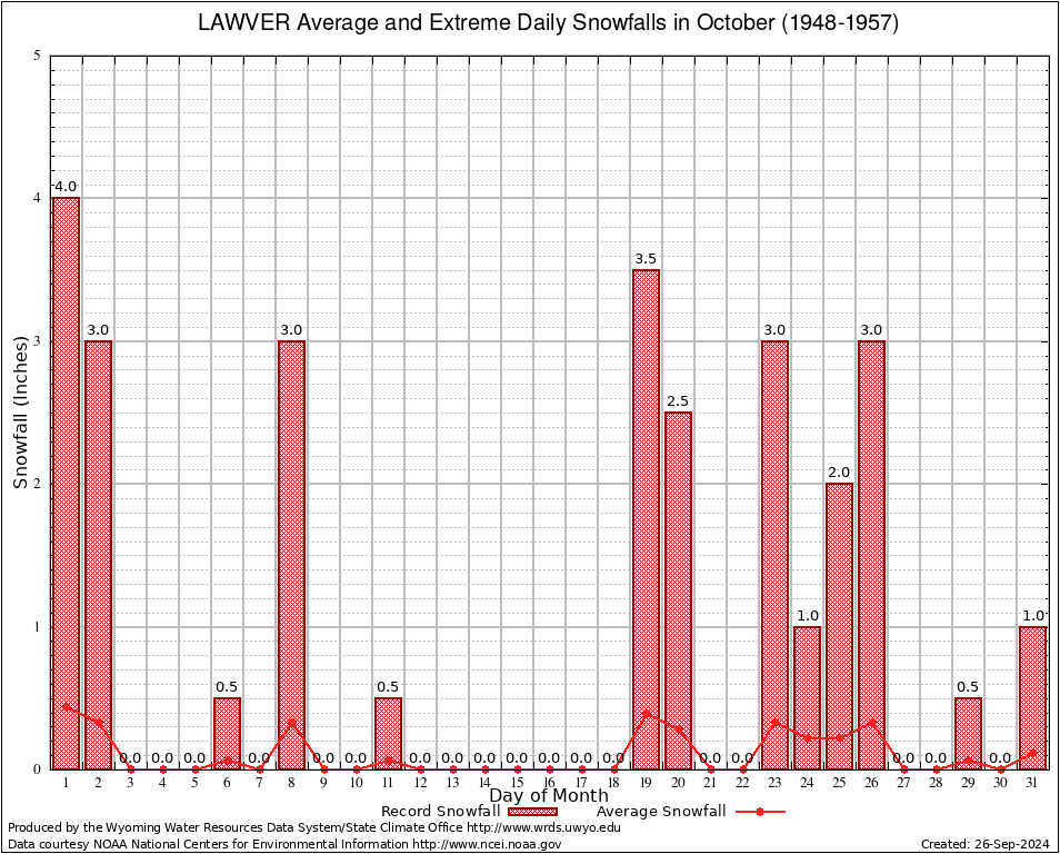 LAWVER (485465) October Average and Extreme Daily Snowfall AMounts (1948-1957) To index page for LAWVER