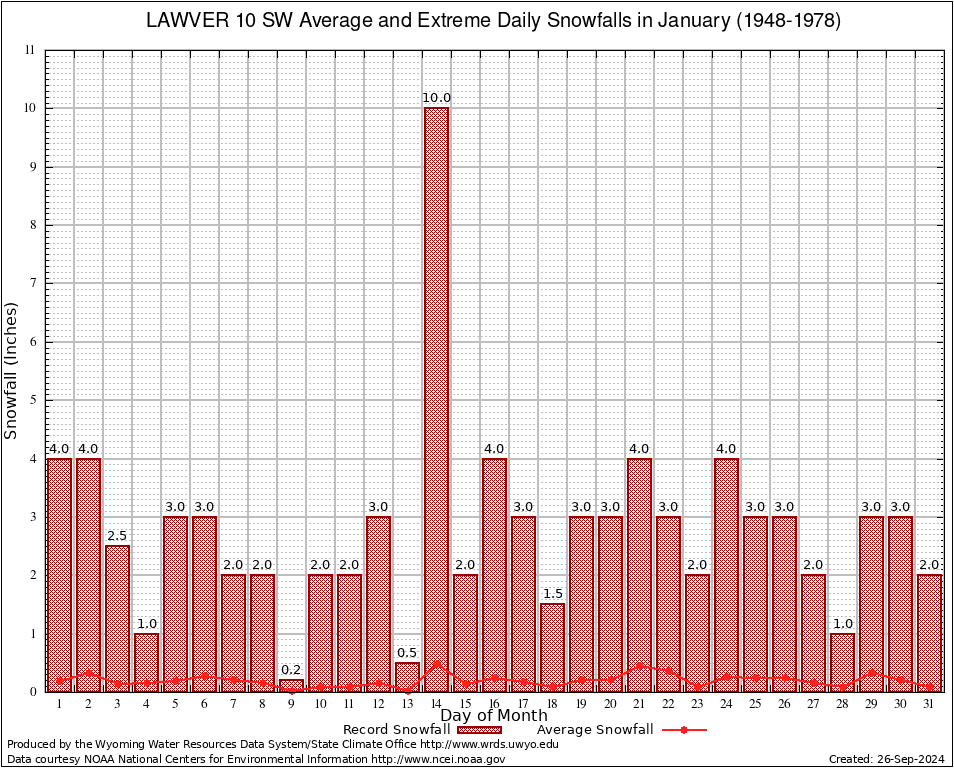 January Average and Extreme Daily Snowfall AMounts (1948-1978)