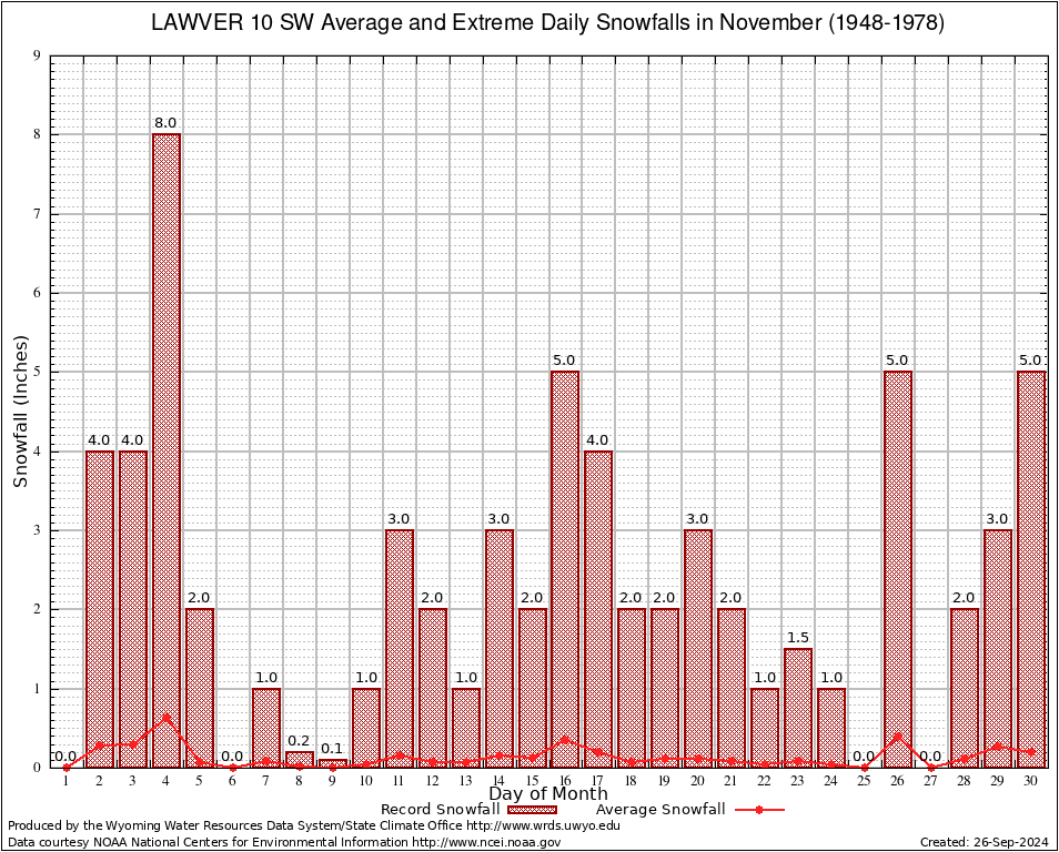 November Average and Extreme Daily Snowfall AMounts (1948-1978)