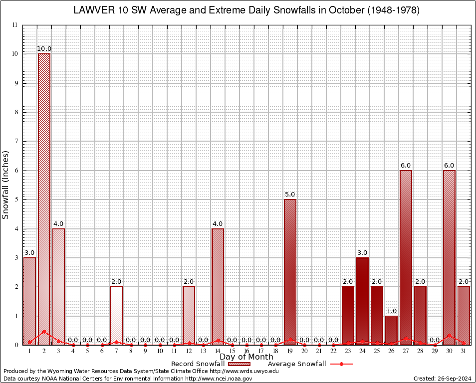 October Average and Extreme Daily Snowfall AMounts (1948-1978)