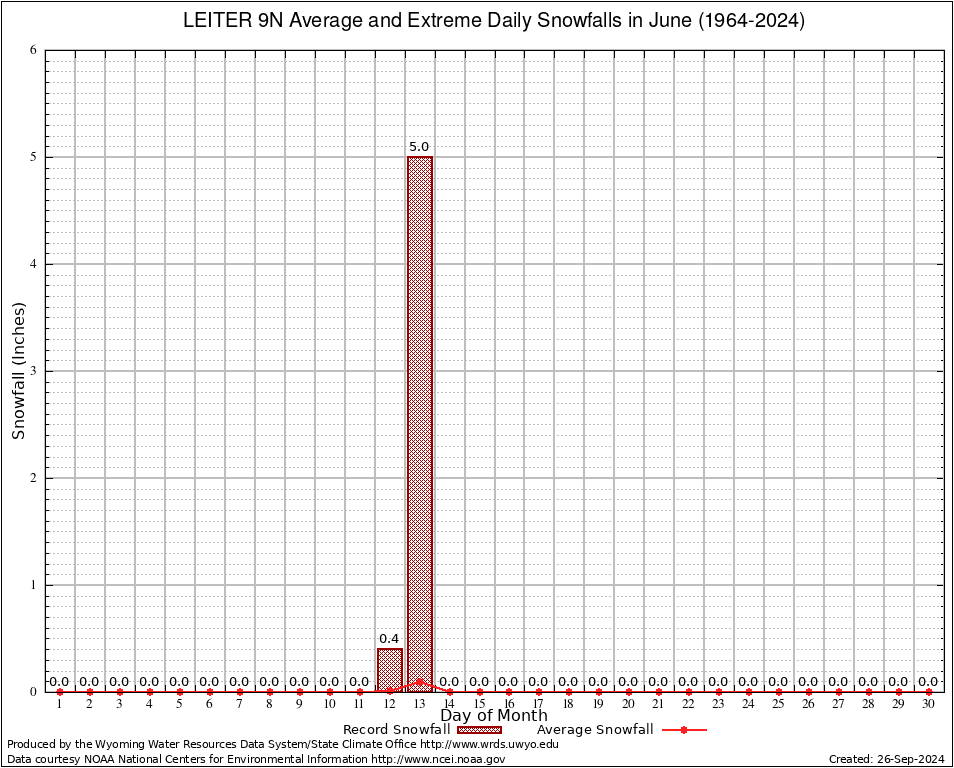 June Average and Extreme Daily Snowfall AMounts (1964-2024)