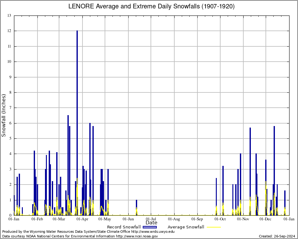 LENORE (485515) Annual Average and Extreme Daily Snowfall AMounts (1907-1920) To index page for LENORE