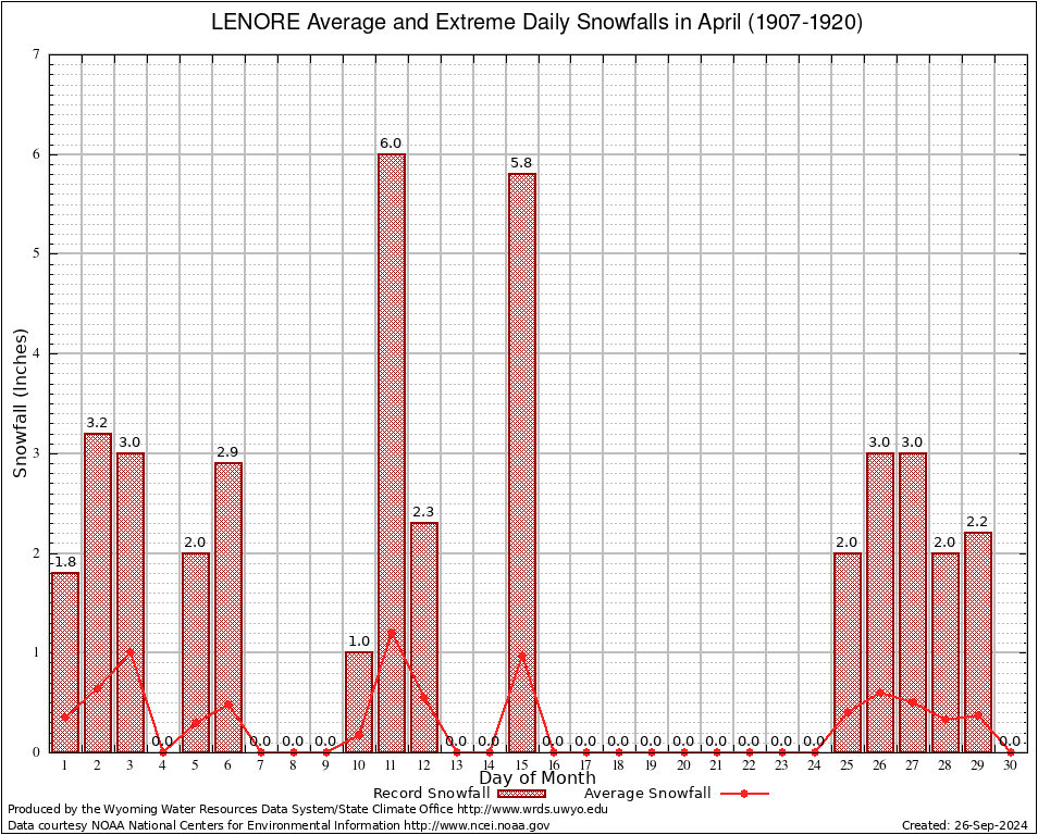 LENORE (485515) April Average and Extreme Daily Snowfall AMounts (1907-1920) To index page for LENORE