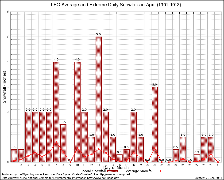 LEO (485520) April Average and Extreme Daily Snowfall AMounts (1901-1913) To index page for LEO