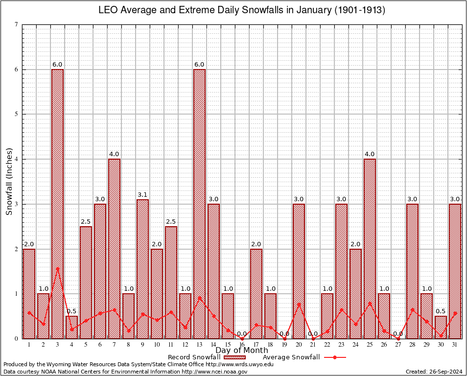LEO (485520) January Average and Extreme Daily Snowfall AMounts (1901-1913) To index page for LEO