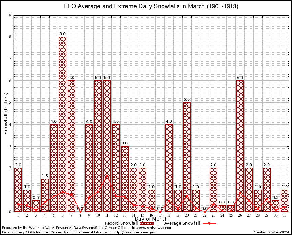 LEO (485520) March Average and Extreme Daily Snowfall AMounts (1901-1913) To index page for LEO