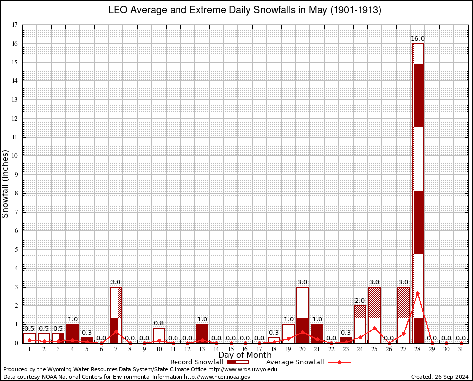 LEO (485520) May Average and Extreme Daily Snowfall AMounts (1901-1913) To index page for LEO