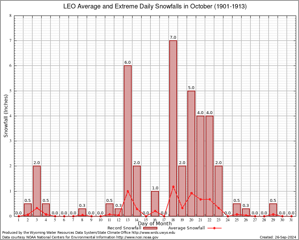 LEO (485520) October Average and Extreme Daily Snowfall AMounts (1901-1913) To index page for LEO