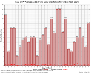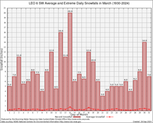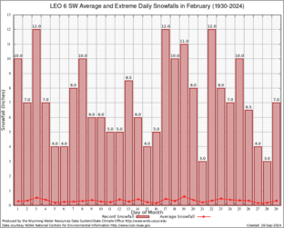 Record Extreme and Average Daily Snowfall (1930-2024)