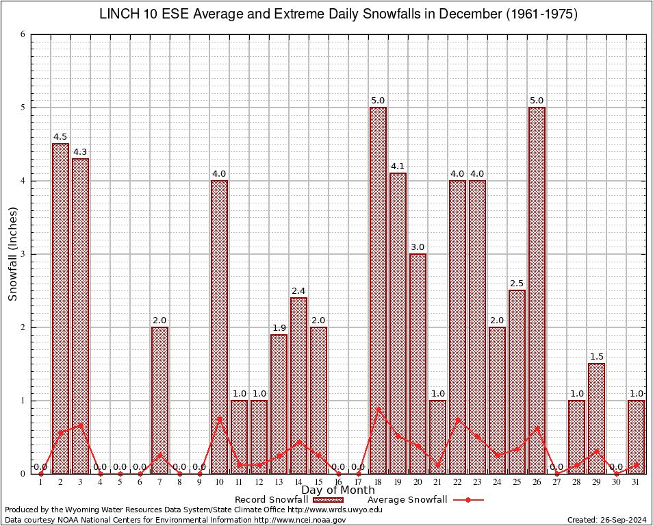 December Average and Extreme Daily Snowfall AMounts (1961-1975)