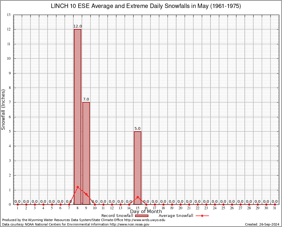 May Average and Extreme Daily Snowfall AMounts (1961-1975)