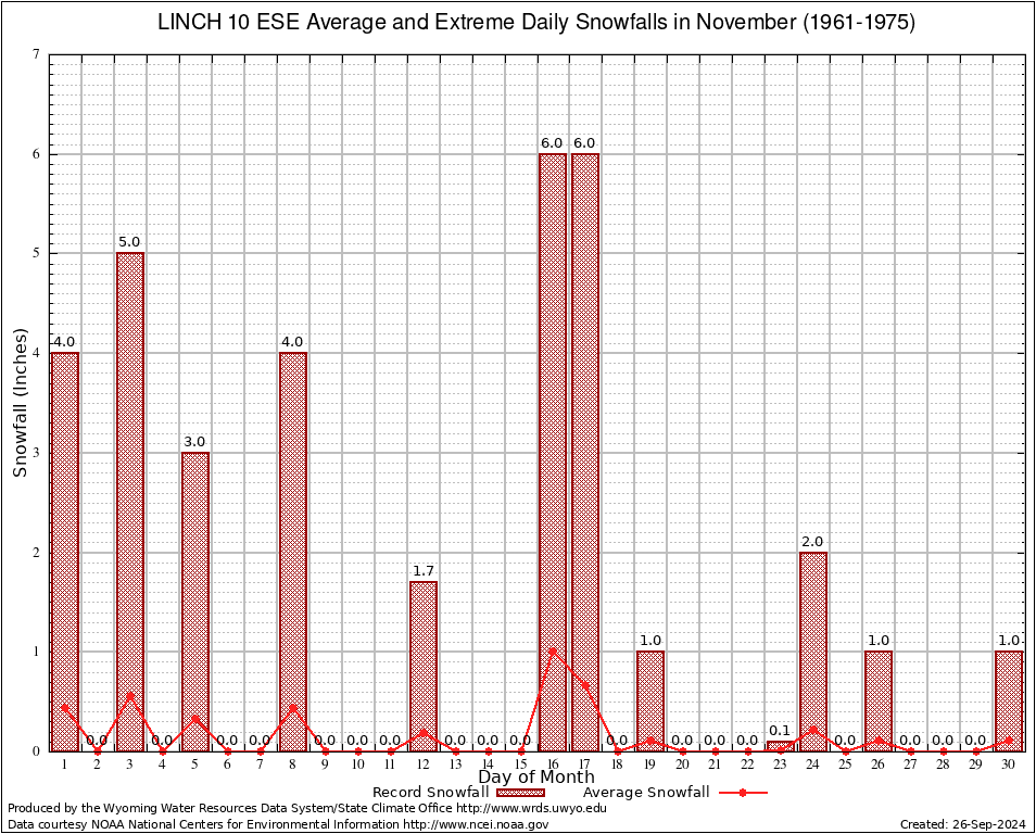 November Average and Extreme Daily Snowfall AMounts (1961-1975)