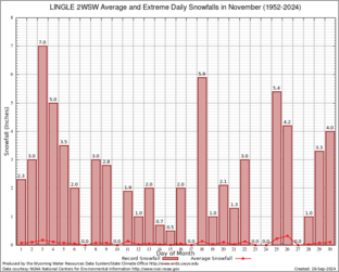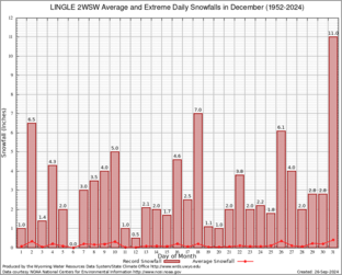 Record Extreme and Average Daily Snowfall (1952-2024)