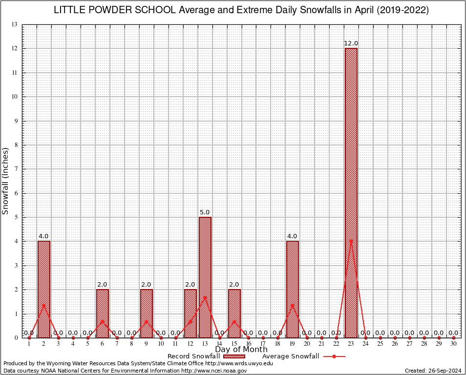 April Average and Extreme Daily Snowfall AMounts (2019-2022)