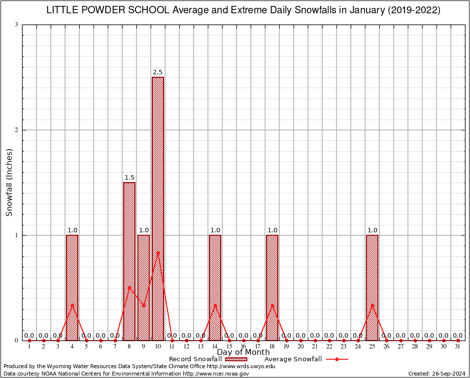 January Average and Extreme Daily Snowfall AMounts (2019-2022)