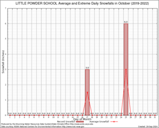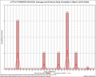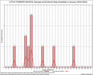 LITTLE POWDER SCHOOL (485686) Record Extreme and Average Daily Snowfall (2019-2022) See Here for Other Stations