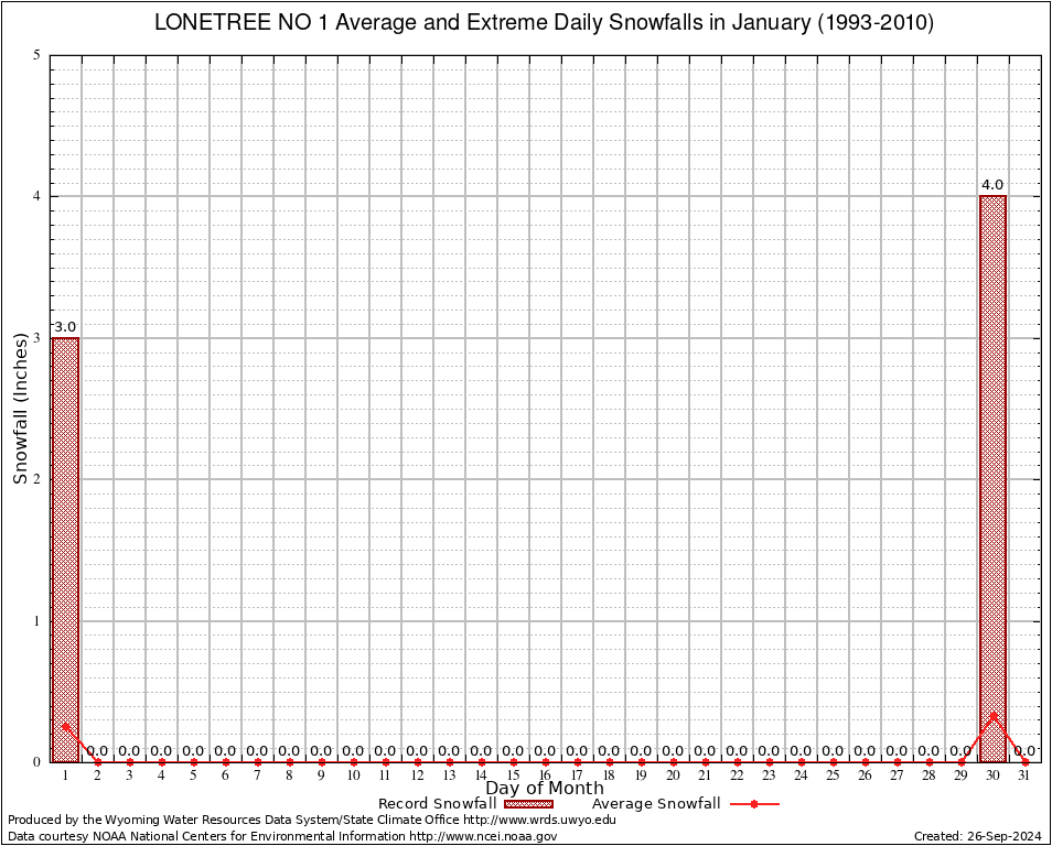 January Average and Extreme Daily Snowfall AMounts (1993-2010)
