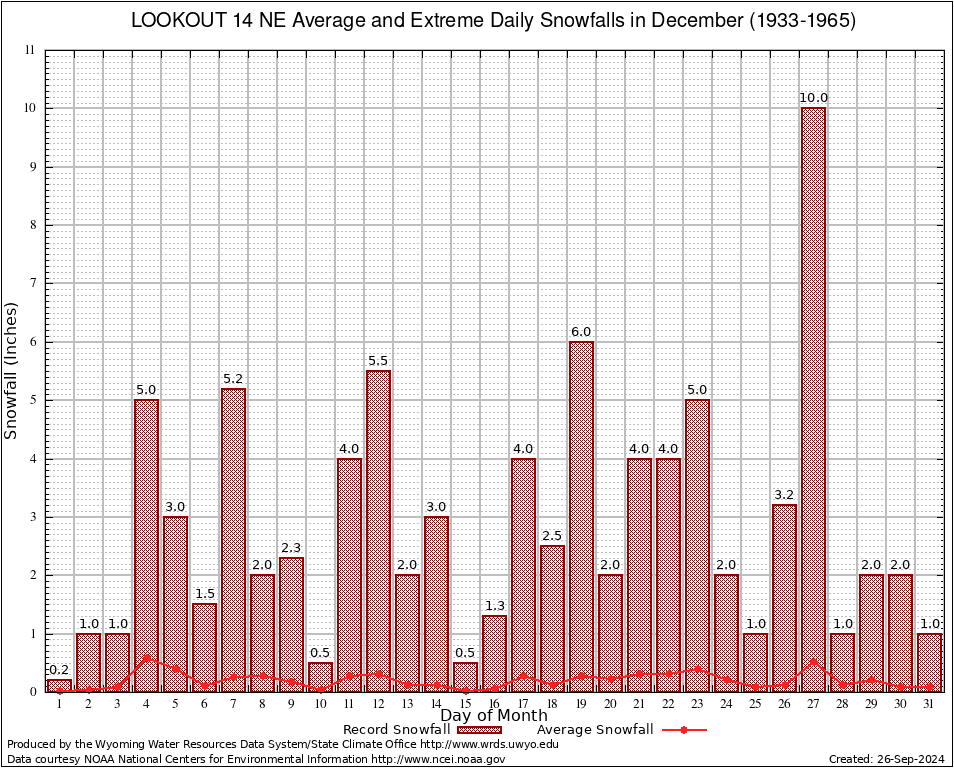 December Average and Extreme Daily Snowfall AMounts (1933-1965)