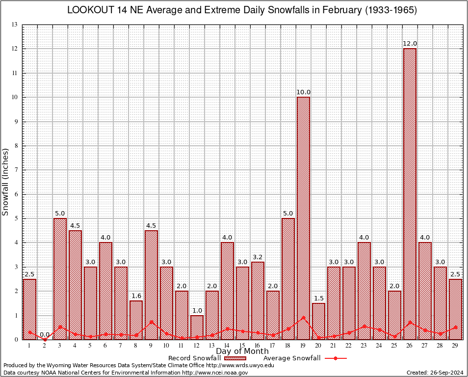February Average and Extreme Daily Snowfall AMounts (1933-1965)