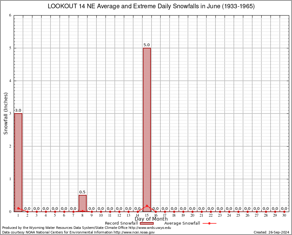 June Average and Extreme Daily Snowfall AMounts (1933-1965)