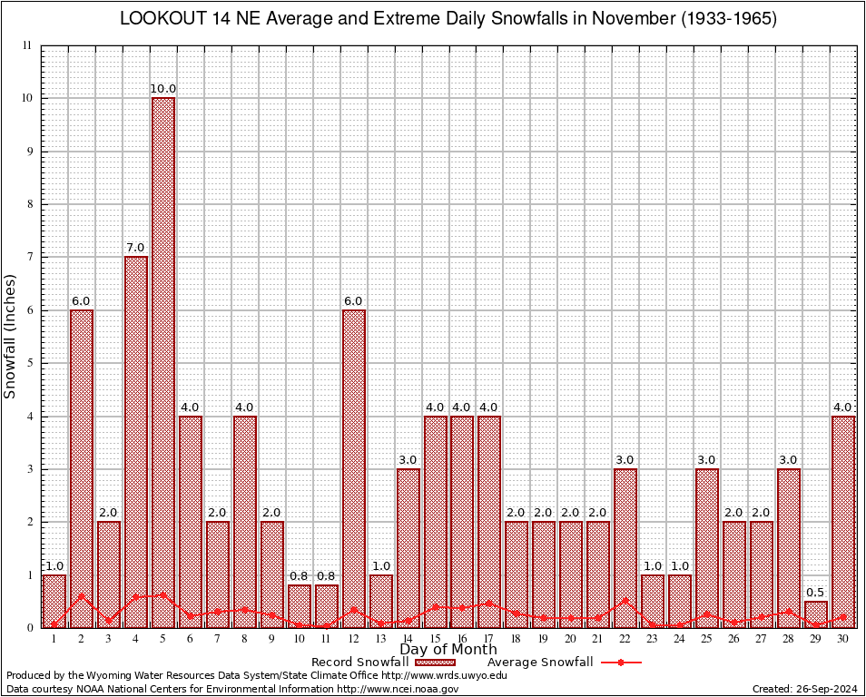 November Average and Extreme Daily Snowfall AMounts (1933-1965)