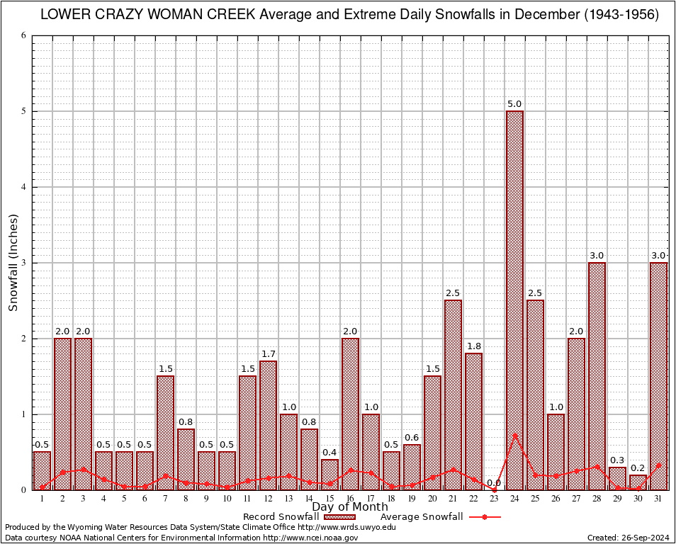 December Average and Extreme Daily Snowfall AMounts (1943-1956)