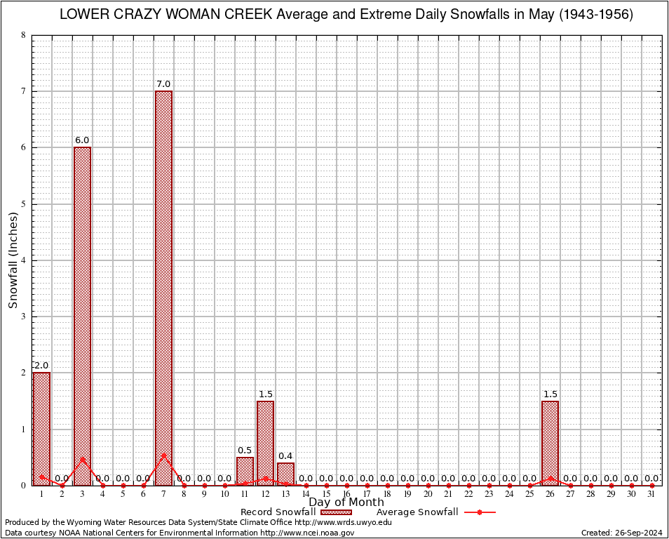 May Average and Extreme Daily Snowfall AMounts (1943-1956)