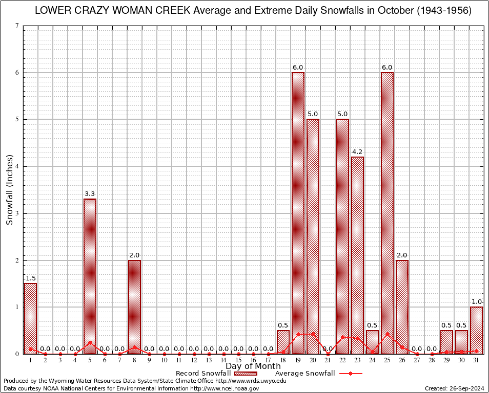 October Average and Extreme Daily Snowfall AMounts (1943-1956)