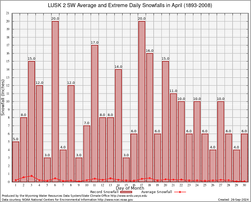 April Average and Extreme Daily Snowfall AMounts (1893-2008)