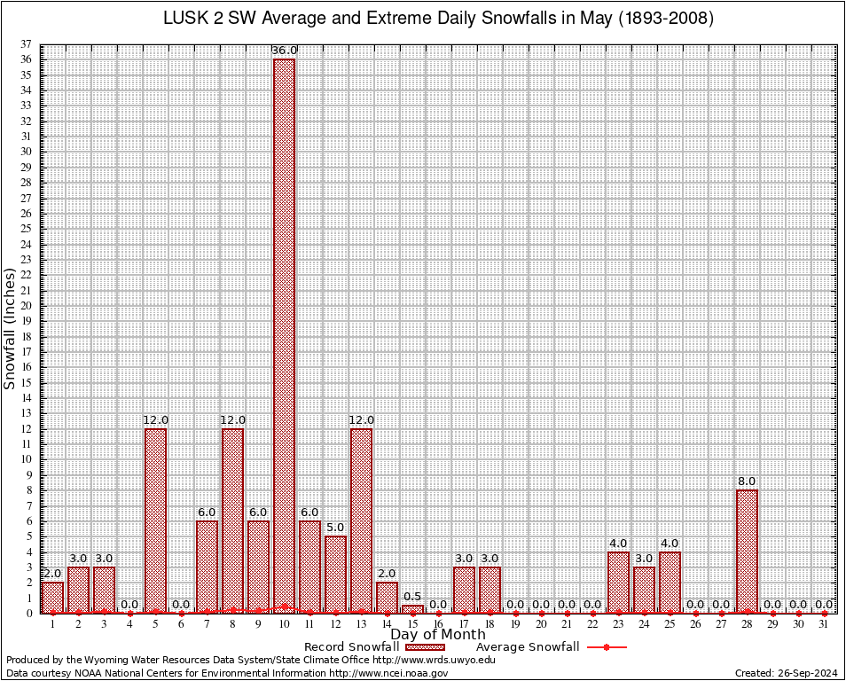 May Average and Extreme Daily Snowfall AMounts (1893-2008)