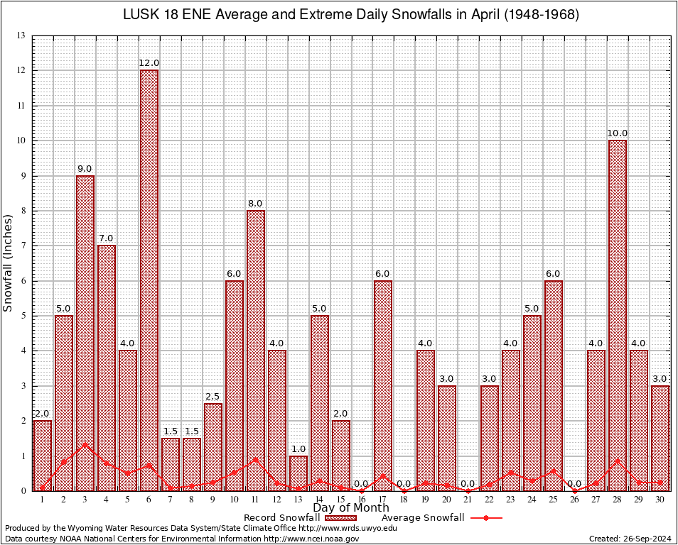 April Average and Extreme Daily Snowfall AMounts (1948-1968)
