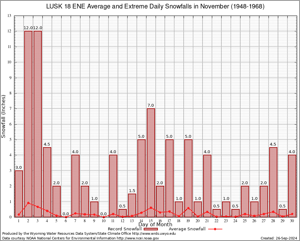November Average and Extreme Daily Snowfall AMounts (1948-1968)