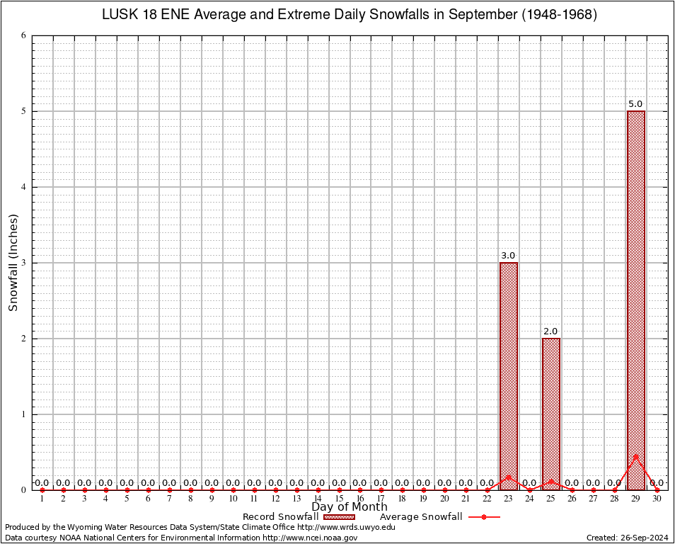 September Average and Extreme Daily Snowfall AMounts (1948-1968)
