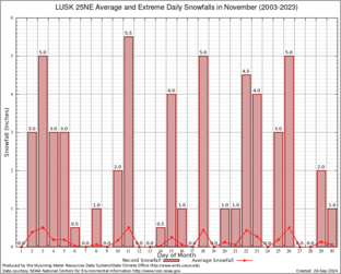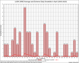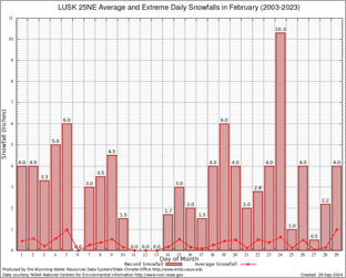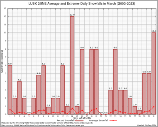 Record Extreme and Average Daily Snowfall (2003-2023)