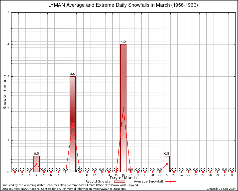 LYMAN (485836) March Average and Extreme Daily Snowfall AMounts (1956-1960) To index page for LYMAN