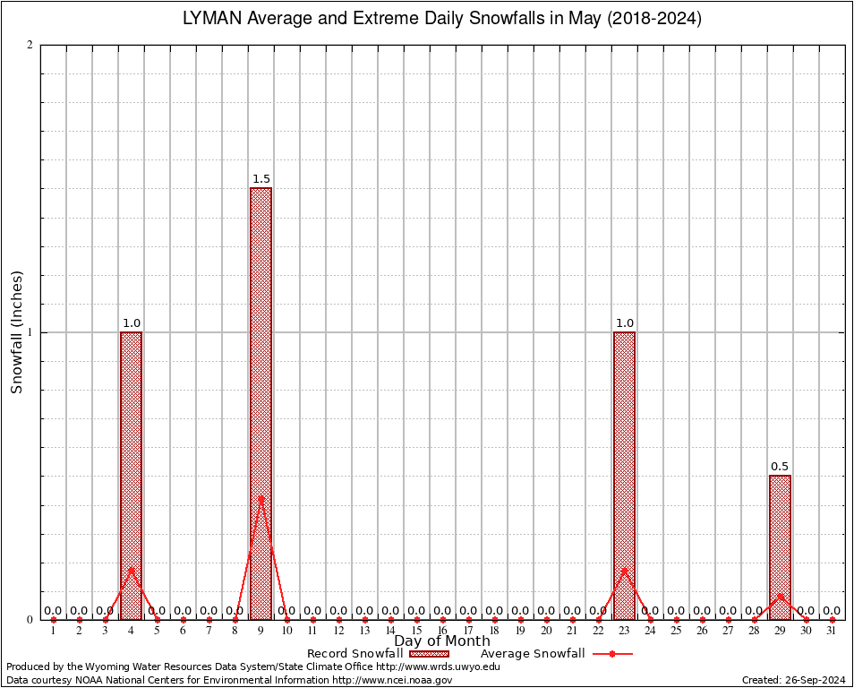 LYMAN (485839) May Average and Extreme Daily Snowfall AMounts (2018-2024) To index page for LYMAN