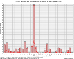 Record Extreme and Average Daily Snowfall (2018-2024)