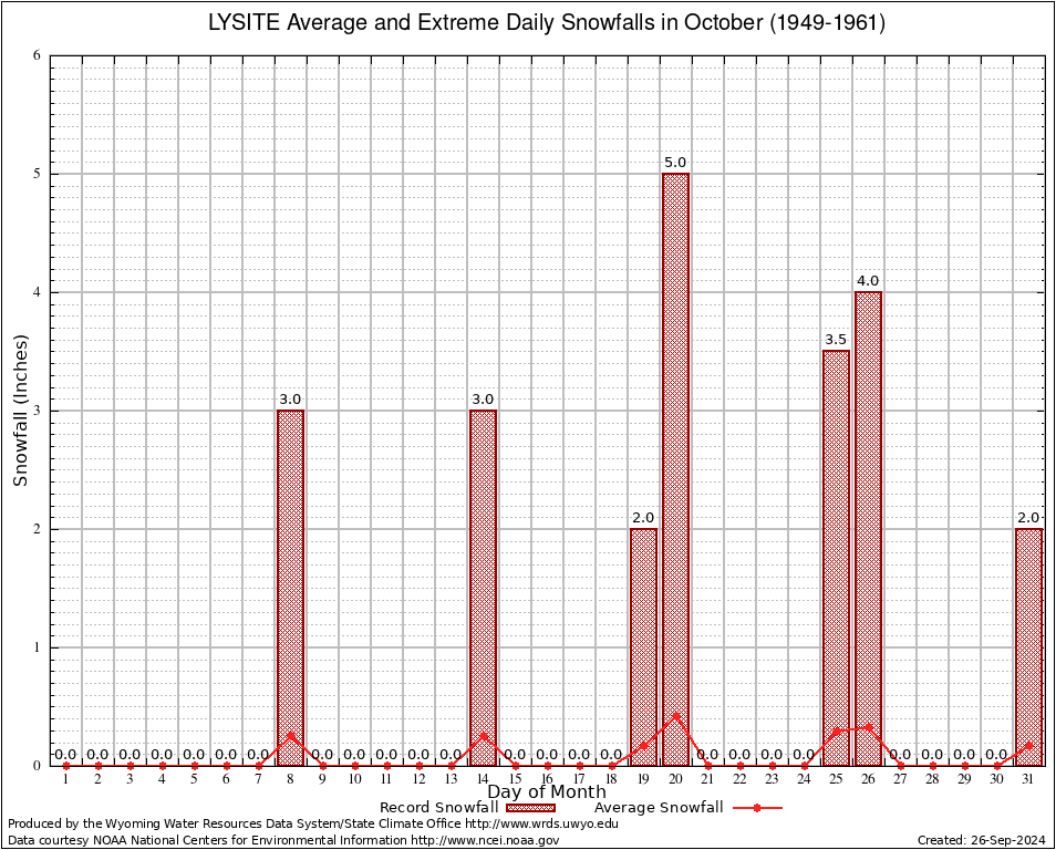 LYSITE (485843) October Average and Extreme Daily Snowfall AMounts (1949-1961) To index page for LYSITE