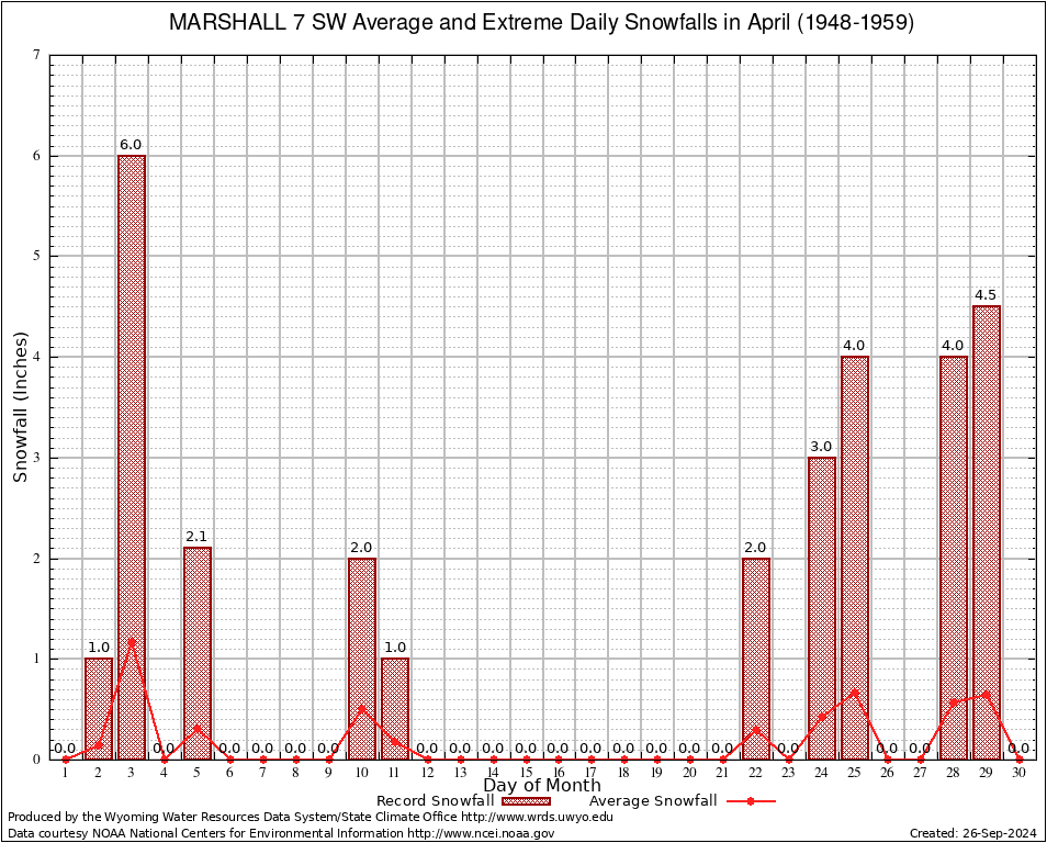 April Average and Extreme Daily Snowfall AMounts (1948-1959)