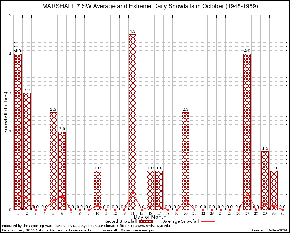 October Average and Extreme Daily Snowfall AMounts (1948-1959)