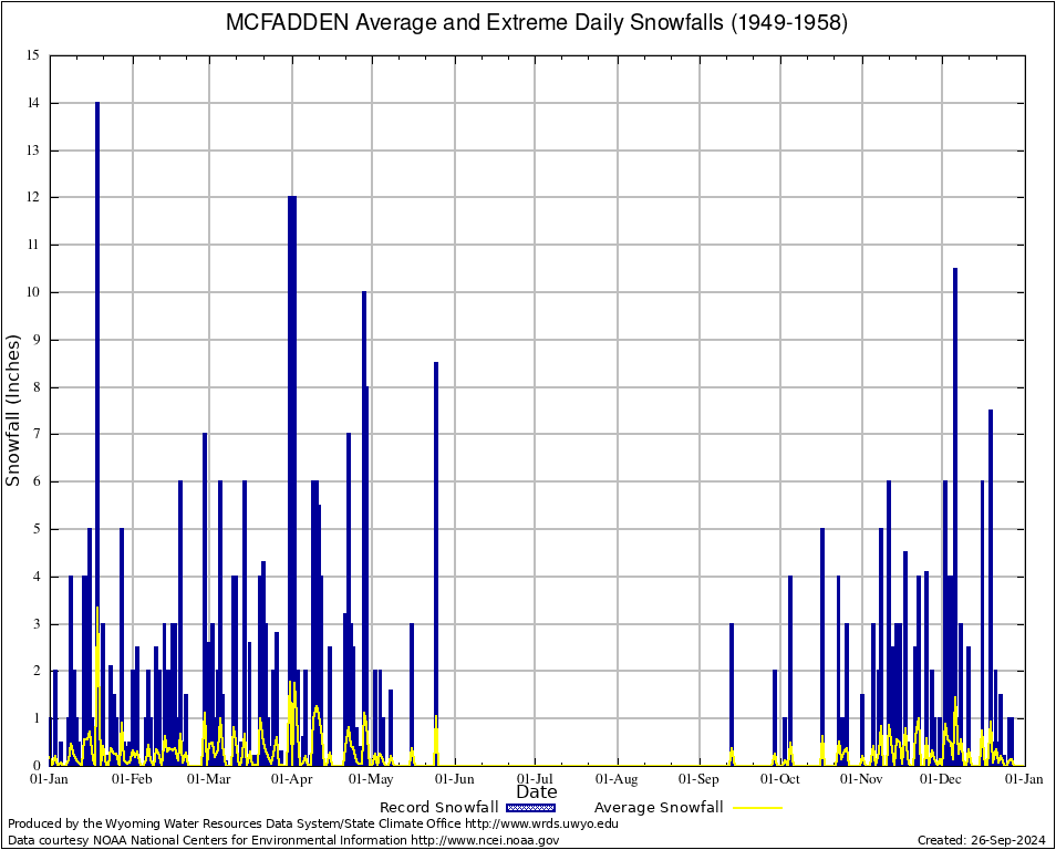 MCFADDEN (486081) Annual Average and Extreme Daily Snowfall AMounts (1949-1958) To index page for MCFADDEN