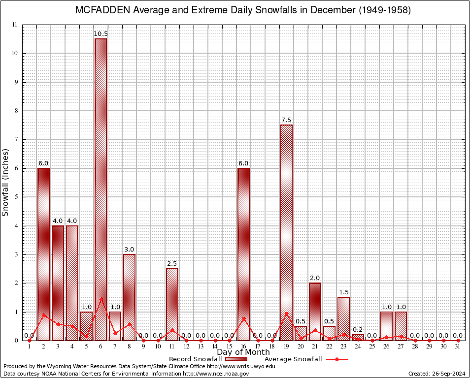 MCFADDEN (486081) December Average and Extreme Daily Snowfall AMounts (1949-1958) To index page for MCFADDEN