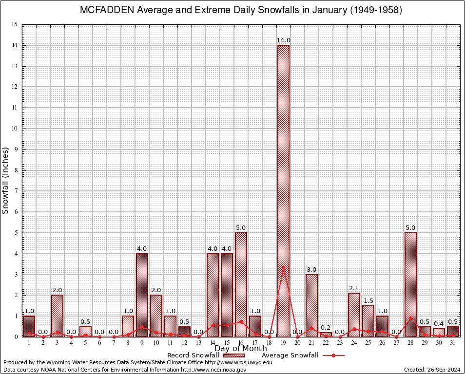 MCFADDEN (486081) January Average and Extreme Daily Snowfall AMounts (1949-1958) To index page for MCFADDEN