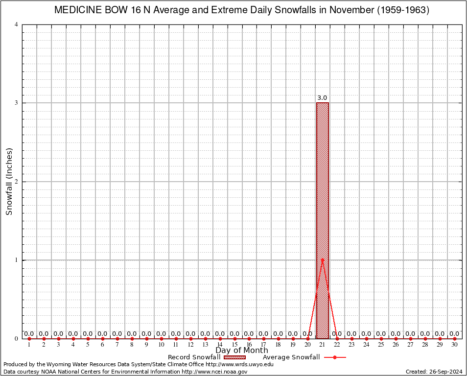 November Average and Extreme Daily Snowfall AMounts (1959-1963)