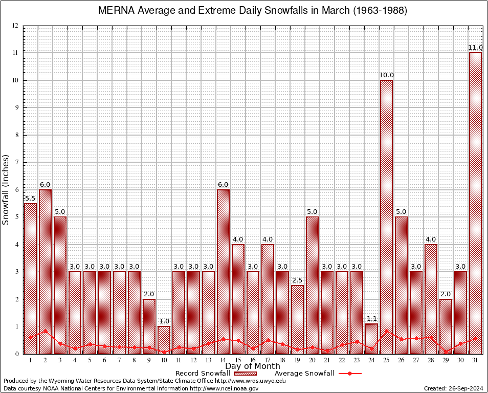 MERNA (486165) March Average and Extreme Daily Snowfall AMounts (1963-1988) To index page for MERNA