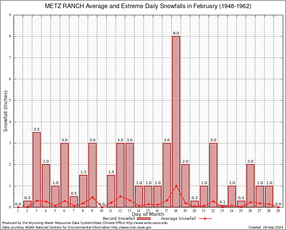 METZ RANCH (486175) February Average and Extreme Daily Snowfall AMounts (1948-1962) To index page for METZ RANCH