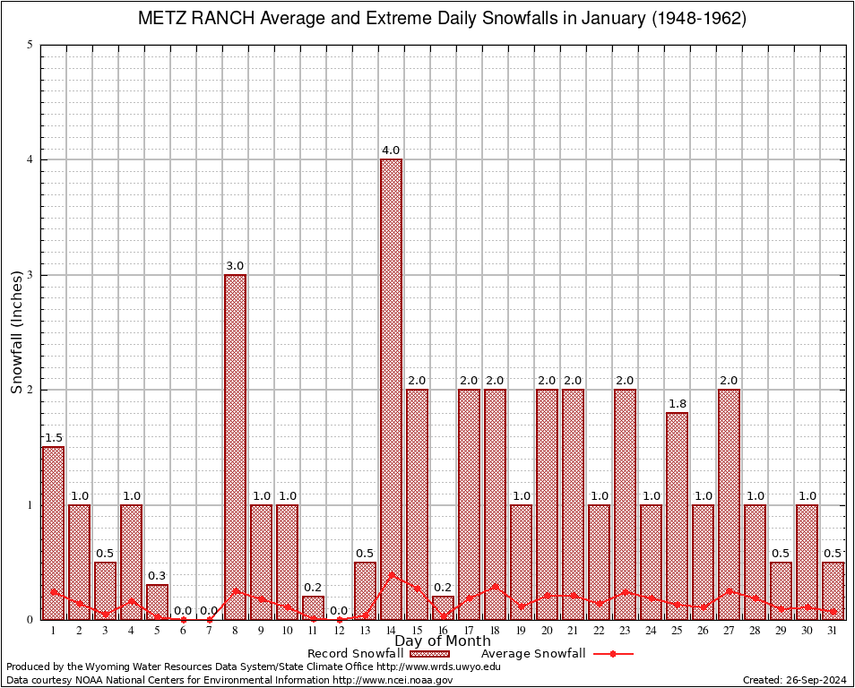 January Average and Extreme Daily Snowfall AMounts (1948-1962)