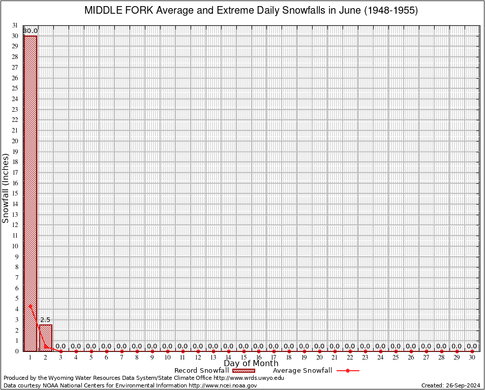June Average and Extreme Daily Snowfall AMounts (1948-1955)