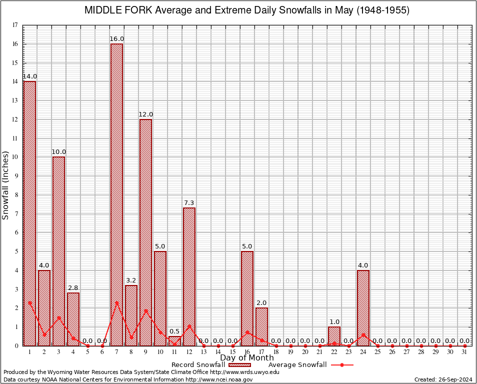 May Average and Extreme Daily Snowfall AMounts (1948-1955)